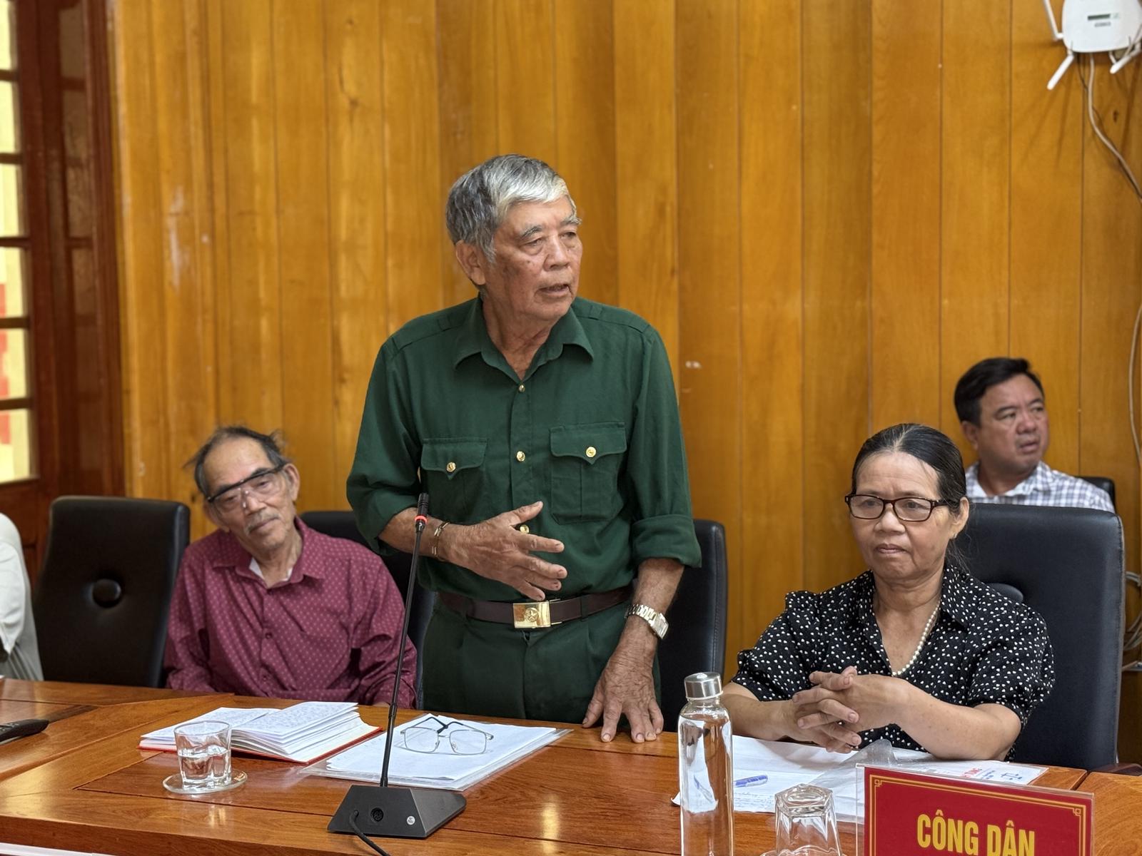 Ông Đinh Xuân Tửu (thôn 7, xã Ea Rốk) nêu lên những ý kiến về các khúc mắc về đền bù giải toả mặt bằng, thu hồi đất khi thực hiện dự án Trung tâm Cụm xã Ea Rốk – Ea Lê. Ảnh: NG