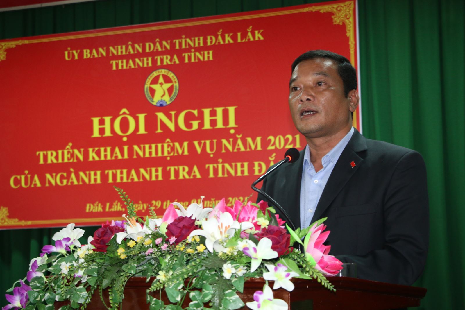 Thay mặt UBND tỉnh, Phó Chủ tịch UBND tỉnh Y Giang Gry Niê Knơng ghi nhận và biểu dương những kết quả ngành Thanh tra đã đạt được trong năm qua. Với nỗ lực quyết tâm của mình, toàn ngành thanh tra đã hoàn thành tốt nhiệm vụ chính trị được giao. Trên các mặt công tác đều có sự chuyển biến tích cực, góp phần nâng cao hiệu lực, hiệu quả quản lý nhà nước, giữ vững kỷ cương pháp luật, bảo đảm an ninh chính trị trật tự an toàn xã hội.